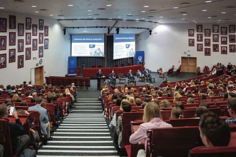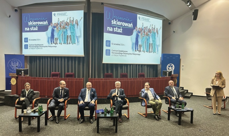 12 września 2024 R. 809 lekarzy i 170 lekarzy dentystów odebrało w auli Warszawskiego Uniwersytetu Medycznego skierowania na staże podyplomowe.